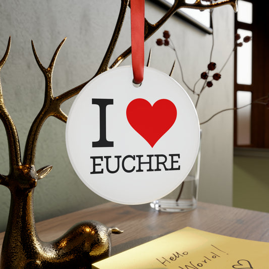 "I Love Euchre" Acrylic Ornament with Ribbon