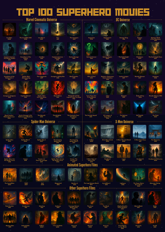 Top 100 Superhero Movies Scratch Off PosterRegular price $29.99 USDRegular priceUnit price per-