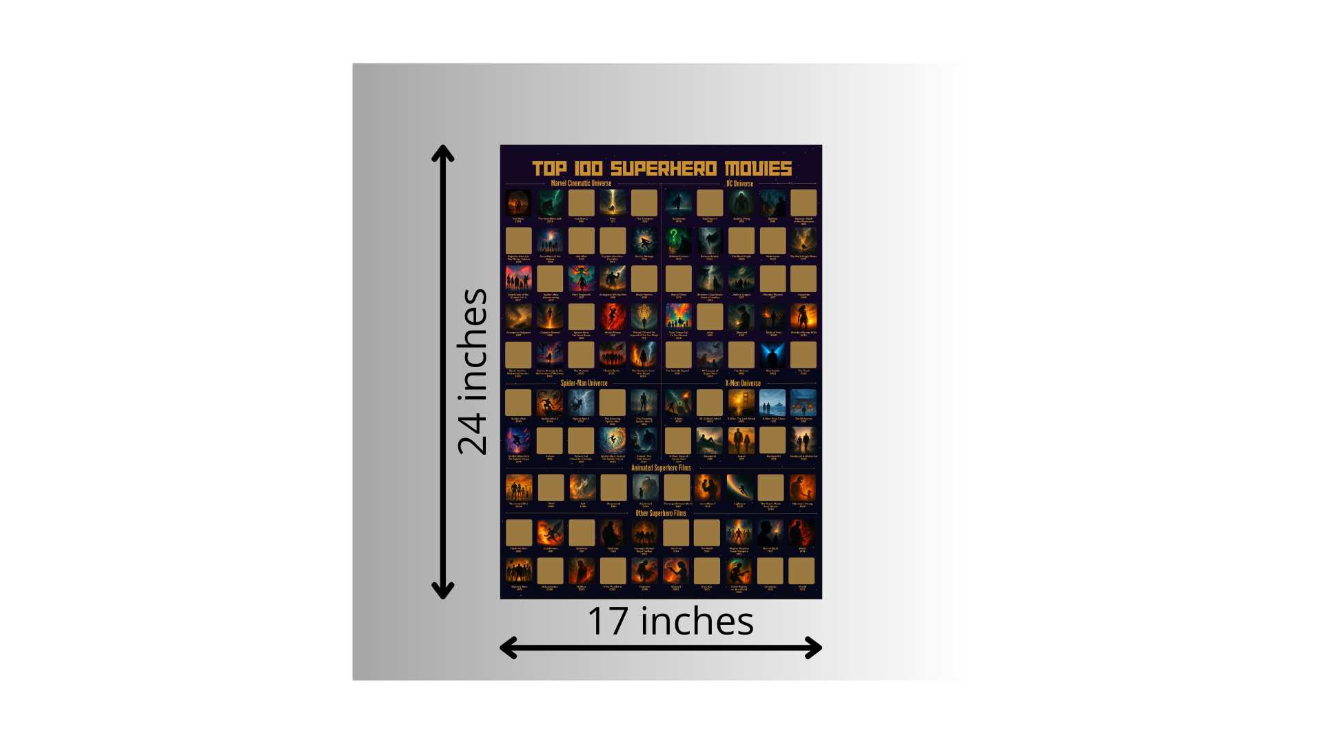 Transform your movie-watching journey into an interactive adventure with our Top 100 Superhero Movies Scratch Off Poster. This isn't just wall art—it's your personal superhero cinema challenge that turns every film you watch into a satisfying scratch-off moment.